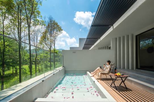 看树林、望山景,在山谷里感受自然的拥抱、在山野之间私享热汤泡池。