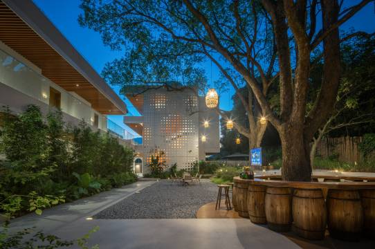 地处风景秀丽的山间、溪畔,是一个集青年野趣、亲子出游、农耕文旅及食宿的精品民宿度假产品,民宿内有私汤泡池、烧烤、围炉煮茶、天幕营地、10亩草坪、菜园、溯溪、垂钓鱼塘、户外儿童娱乐区、休闲临建等等;漫步于林间栈道鸟鸣相伴,惬意舒适。民宿周边有丰富的旅游资源、登高望远、漂流、游览古树和万亩茶园。