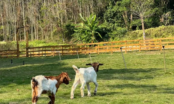 这是我很喜欢的一家山野民宿。当天到达民宿后,就有工作人员过来停车场贴心帮忙搬行李。当踏进民宿时,映入眼帘的是一大片绿色的景色,还看到了那几只羊儿。孩子也很喜欢这里,因为能喂羊鸭子兔子鸽子,还能DIY漆扇和木版画。随后在辽阔的大草坪随意和宠物们玩耍。六宫格早餐牛腩河粉豆浆都让我们吃得饱饱的。而且民宿的每一位工作人员都很热情和贴心,很聊得来,感觉就像朋友一般温暖,给民宿和你们大大的赞!下次有机会一定会再次入住。
