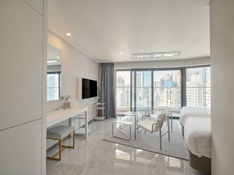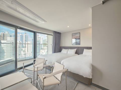 过马路就是沙滩,房内还有小型的洗衣机及衣物除臭机,下次来釜山一样会选这间饭店