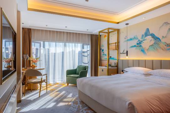 酒店房间宽敞明亮,也比较干净。落地窗显得房间非常敞亮。我们订的家庭房,房间比较大也很温馨,酒店的装饰装修也很有特点。酒店和浙江饭店是在一起的,但是酒店本身很新,全屋智能,设施也很方便,早餐在12楼,比较丰盛选择也多。酒店的位置也好,后面就是武林夜市,距离in77还有西湖都挺近的。一定要说缺点的话就是淋浴间稍显局促。还有就是半夜一点多,还有人在楼上或者是隔壁开party,一群人大吵大闹好久,把我们一家从睡梦中惊醒,让人无法入睡。酒店的隔音应该说还行,不然我估计整个楼都不能睡了。当然,这也不是酒店的问题,是个人素质的问题。对酒店整体还是比较推荐,满意。