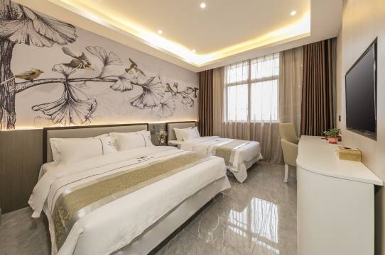 没有拍照片,房间挺大的,原以为价格这么便宜,没有多大的期待,没有想到会出乎意料,有接送机服务,非常不错,千万不要导航酒店位置,定位腾王阁序就好,酒店没有提供水需要自己备,我们的房间是一个1.5的床还有1.2的,很不错,晚上不吵闹,很安静,这次很满意
