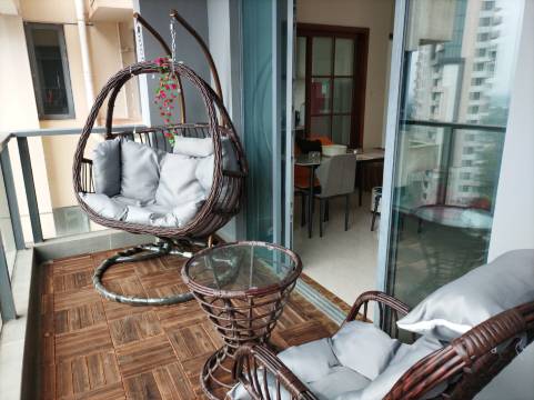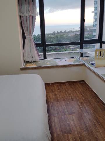 位于鲁能山海天淇水湾伍号小区里,一线海景房,在房间跟阳台都可以看到美丽的淇水湾,步行十分钟就可到达淇水湾沙滩,部分阳台还可以看到火箭发射架,小区有超市,近铜鼓岭石头公园佛光寺,房间里有设施齐全,可以做饭,工具齐全,有洗衣机电冰箱