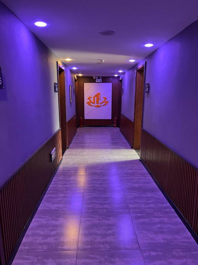 离财富很近,走路两三分钟就到了,室内环境也不错,前台姐姐服务很好,周围饭店也很多