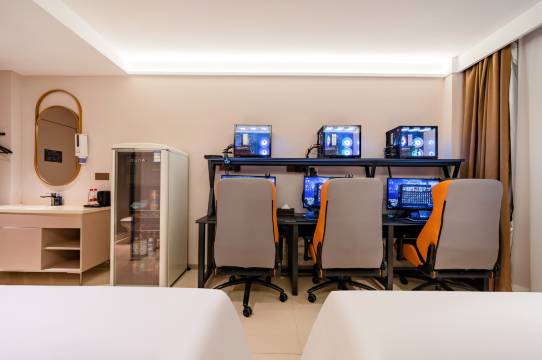 卫生方面,床单被褥一尘不染,桌面、键鼠都擦得干干净净,卫生间也没有异味,清洁做得特别到位。环境上,房间隔音效果很好,不会被外界噪音打扰,整体装修风格潮酷,很符合电竞主题,和朋友待着特别放松。