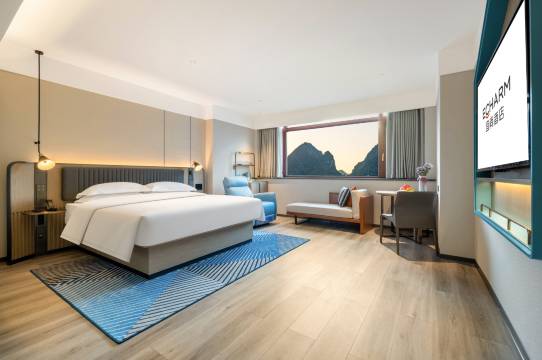 这个酒店非常好 有自己的停车场 有4个充电枪 距离5公里有个高铁站充电枪估计有100多个 又大又有卫生间 人少 酒店前台非常热情 酒店屋顶还有游泳池 我们是路过这提前订的 非常好 下次有机会单独来都安旅游还住这 晚上订的烧烤味道和食材非常好