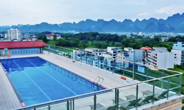 从兴义回来都安顺便玩,订了家庭房房间非常大又乾净环境舒服。隔音非常好又有空中花园又有天台泳池。环境舒服前台工作人员和客房服务员服务态度非常好可以延迟退房。以后来都安旅游必定要再订这酒店非常好。
