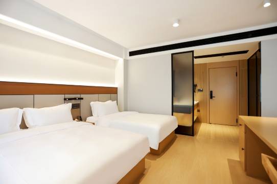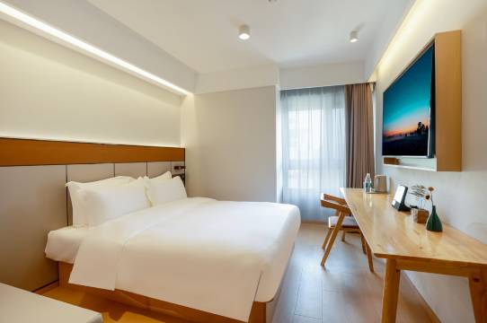 酒店出门即达核心交通枢纽,无论是搭乘地铁还是打车都极为便捷 。客房空间开阔通透,毫无压抑感,交通便利是它的一大亮点,步行几分钟就能抵达公交站,日常出行省时又省心 。同时,宽敞的客房带来绝佳居住体验,让旅途的疲惫在舒适空间中瞬间消散 。