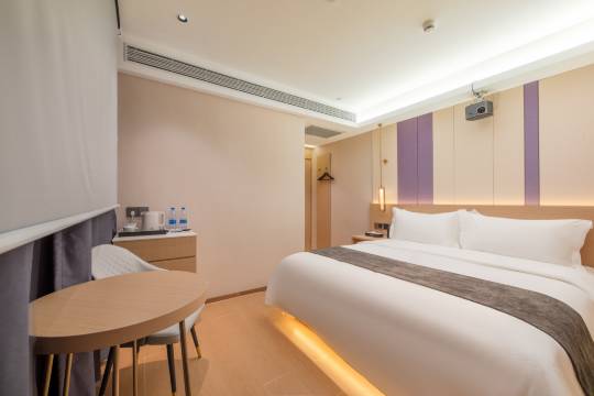 设施齐全,干湿分离洗澡间。房间非常干净,无灰尘,全屋智能,前台热情接待,枕头很舒服,床非常整洁,无异味。楼下还有超大停车场免费停车。出行交通便利,靠近地铁站,公交站台,非常值得推荐,值得入住。