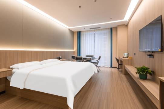 出差住了一次这个酒店,真的被惊喜到了!本来以为就是个普通快捷酒店,结果从进门就感觉不一样。前台小姐姐特别热情,看我拿着行李箱还主动递了瓶水。房间比想象中大很多,床品摸着就很舒服,躺下去真的秒睡。隔音效果确实不错,完全没听到走廊声音。位置很方便,打车去南站就20分钟。周边吃的很多,晚上饿了随便找了家烧烤店,味道意外地好。这个价位能住到这样的酒店,下次来太原肯定还选这里!
