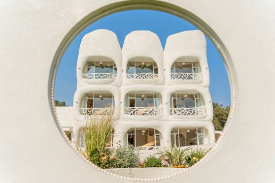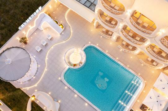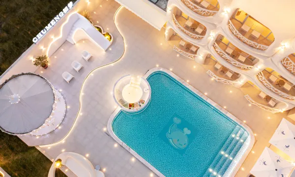 酒店外部转换秀用心了 有小草坪有游泳区域 夏天来有玩个迪士尼,游个泳都是不错的度假选择,最吸引娃娃的是酒店的室内滑滑梯,好几个房型都带滑滑梯,带了滑滑梯自然房间空间有点局促,但也能接受,本身就是为了滑滑梯来的。在迪士尼玩了一天,太累了,歇歇脚,是个不错的选择。装修风格有点希腊爱情海边民宿的感觉~性价比极高,迪士尼游玩首选。
