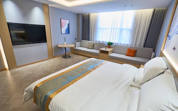 踏入房间,眼前一亮。房间布局合理,空间宽敞明亮,每一件家具都显得精致而实用。柔软的床铺仿佛是为疲惫的旅人量身定制,躺上去的瞬间,所有的疲劳都烟消云散。床品的质感极佳,干净整洁,散发着淡淡的清香,让我在夜晚能够安然入睡。房间内的配套设施一应俱全,智能设备操作便捷,空调的温度调节得恰到好处,热水供应也十分稳定,无论是洗漱还是沐浴,都能享受到极致的舒适体验。