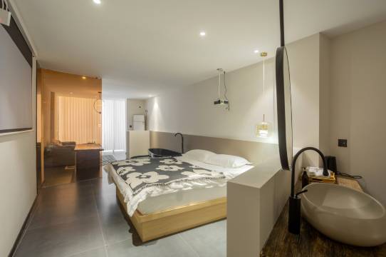距离各种车站地铁都不远,出行方便,装修简约高雅,投影影院式体验,白色床品,整体卫生干净清爽,推荐!!!