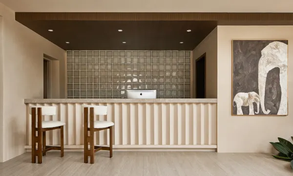 整个酒店建筑是度假风格 轻奢废土风
