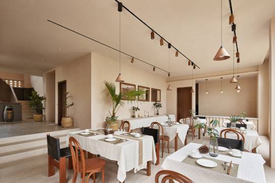 整个酒店都是超有格调的异域风设计,黄白配色高级又出片📸室内室外都好出片