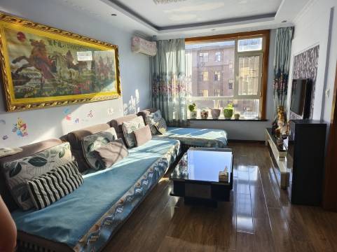 两室两厅一厨一卫 布置得很好 妥妥的家居氛围 客厅沙发宽大 坐着看电视 看手机都很舒服 中厅还有餐桌 拳击沙发套 厨房干净整齐 不用也很舒服