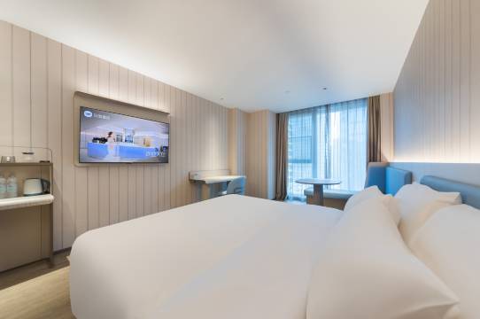 酒店拥有汉庭3.51版本客房,高静音隔音系统,55寸电视大屏,WIFI全酒店覆盖,华掌柜自助办理、自助行李寄存柜、智能机器人送物、自助洗衣房、会议室、COSTA咖啡等多功能区,欢迎来体验智感高颜的品质国民酒店。