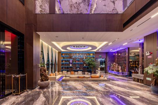 酒店位置超赞,就在凌云路主干道旁,离客运站和陶府广场超近,逛吃出行都方便,自驾过来还有免费私人停车场,车位充足,彻底解决停车烦恼。一进大堂就被惊艳,现代简约的装修大气雅致,blingbling的顶灯质感拉满,公共区域干净整洁,连过道拍照都巨出片,细节里全是用心。