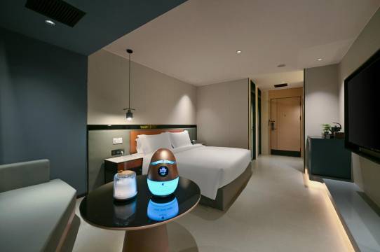 前台服务好外卖,还有机器人可以装上楼免费的电焊停车场停车非常方便,26楼观景台可以看到故宫夜景性价比比较高,有机会还会再入的,前台服务非常热情,哪里都很满意,开发票特别方便,是电子发票,前台有多余的房间还得免费升级的房型,真的超级超级不错,前台的老冰棍也是随时可以拿的,真的很人性化,可以提供洗衣房和健身房,为啥打扫的也很干净乳胶枕睡觉特别舒服,床品也柔软舒适,26楼还有一个儿童玩耍的体育特别适合带她来玩,离大悦城什么的都很近,有机会还会再来的,超级超