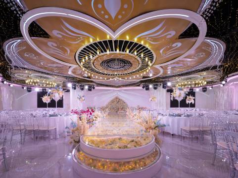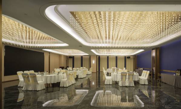 酒店1-4楼为餐厅,装修豪华、环境幽雅、设计精美、设施先进的主宴会厅,主宴会厅面积1000余平可举办五十桌大型婚宴;明档餐厅为您展示酒店精美可口的菜肴;500余平主题宴会厅、350余平多功能厅、活动式的餐饮4连包,功能配套齐全,宽敞明亮,可举办各式大型商务会议;14间风格不一的餐饮包间,设计高雅、简约时尚,为您提供愉悦的就餐环境。还有宽敞明亮的自助餐厅,就餐环境优雅,超多美食可供选择;户外草坪婚礼平台,豪华大气,装修精致,视野宽阔,带给您精妙绝伦的婚礼体验。