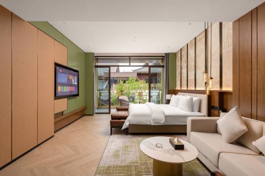 满意度和性价比都非常非常高的一次体验,住的一楼,房间自带一个小院子,层高也比一般的酒店高,采光通风什么的都非常好,面积也很大,比一般的标间面积大很多,最最重要的是,卫浴分离,这简直对出差的人不要太友好哦~~床上用品也很不错,有助睡眠,还有全屋智能,餐厅也很好,早餐款式也很多,服务态度也非常好,主要酒店还很新,唯一的瑕疵就是第一次停车场路标指引不是很清晰,人生中第一次打电话让工作人员来接的程度,总的来说,瑕不掩瑜,非常非常推荐