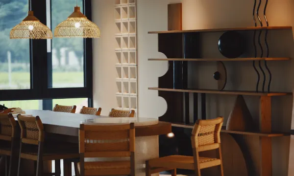 酒店有二个区域,相差100多米的距离,给我升级住到了稻田区,出门左右二边各有一个咖啡馆,入住客人免费送了二张咖啡券,酒店对面就是江景,后面是稻田里,景色超赞,非常适合来这里发呆放空。