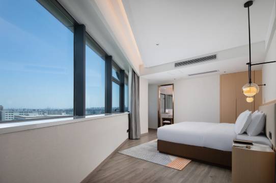 酒店拥有多间宽敞时尚的客房,配55寸LED液晶电视、空气净化器、双功能冰箱,部分房间配微波炉、洗衣机、胶囊咖啡机追求人性化设计,贴心为您打造舒适奢华的休憩空间。在这里,尽情释放您的身心,是您出行理想的归属地。