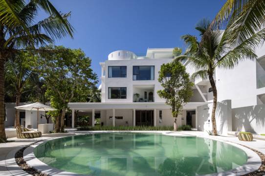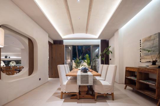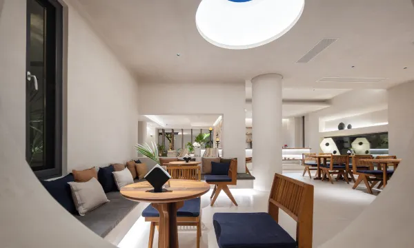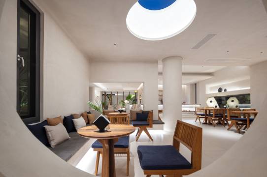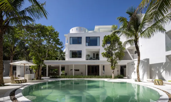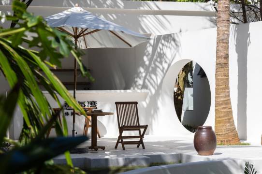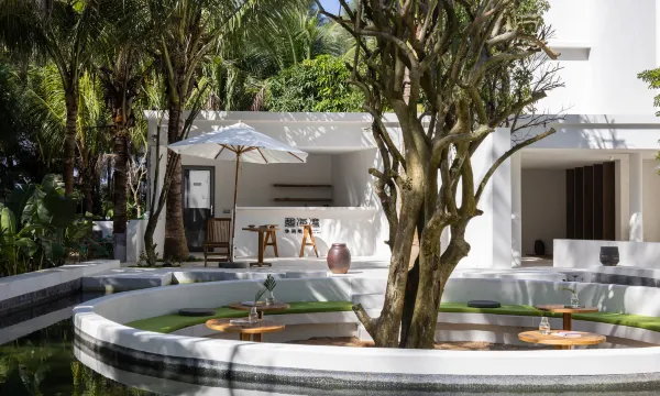 烟墩海壹号院子是海南森林客栈高端民宿子品牌,是海南的金宿。 位于海南万宁龙滚镇,临近山钦湾燕子洞,出门就是大海,人少景美,保留着原始的文化和生态环境,海洋、河流、热带雨林、渔村文化在这里相互融合。 民宿设计延续当下时尚侘寂风,有着13种不同的风景房间,每个房间落地大开窗外都是美丽的自然风景或东可俯瞰浩瀚的大海,西望夕阳下穿村而过的环岛旅游公路,南北是椰林和木麻黄树交相辉映。 设计采用了充满肌理感的象牙白灰泥,通过不同的墙体转折增加了民宿院落的体验感。 一层设置了游泳池、咖啡厅、茶室、下沉式小酒吧、室内室外就餐区、长桌宴、共享洗衣房、共享厨房和海南19个市县返乡新农人各类岛民好物等伴手礼供应和品尝。 门口椰林户外海滩上有树坑下午茶、树屋、木头健身房、儿童滑板、滑滑梯、网红秋千等,可看日出、海钓、挑灯捉蟹、拉网捕鱼和篝火晚会(团体预约)等。