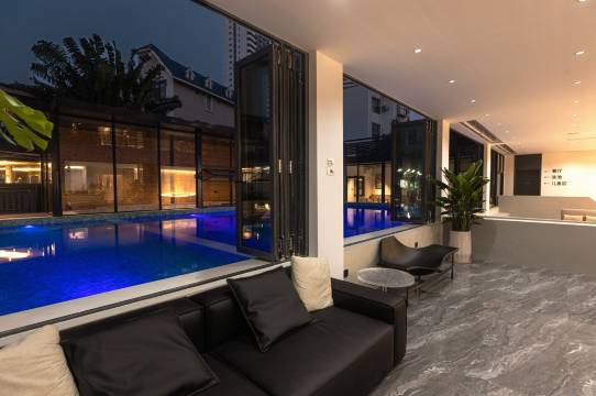 酒店位于别墅区,白色的灯很醒目,很容易找到,房间很大很舒适,现代简约的装修风格,老板很热情,泳池很漂亮。