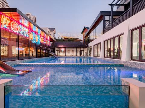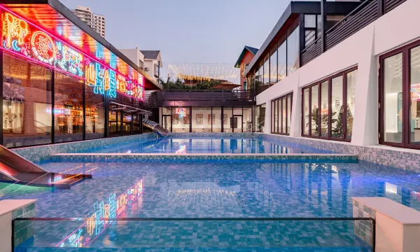 酒店拥有超100平米的超大公共泳池及儿童专用泳池,同时配备十余米长的大型封闭式金属滑梯,泳池旁还配有泳池酒吧,给您及孩子带来舒适的玩水体验,同时酒店还配备会议室、健身房以及近百平米烧烤露台,无论聚会、出游、团建,都能给您丰富的入住体验。