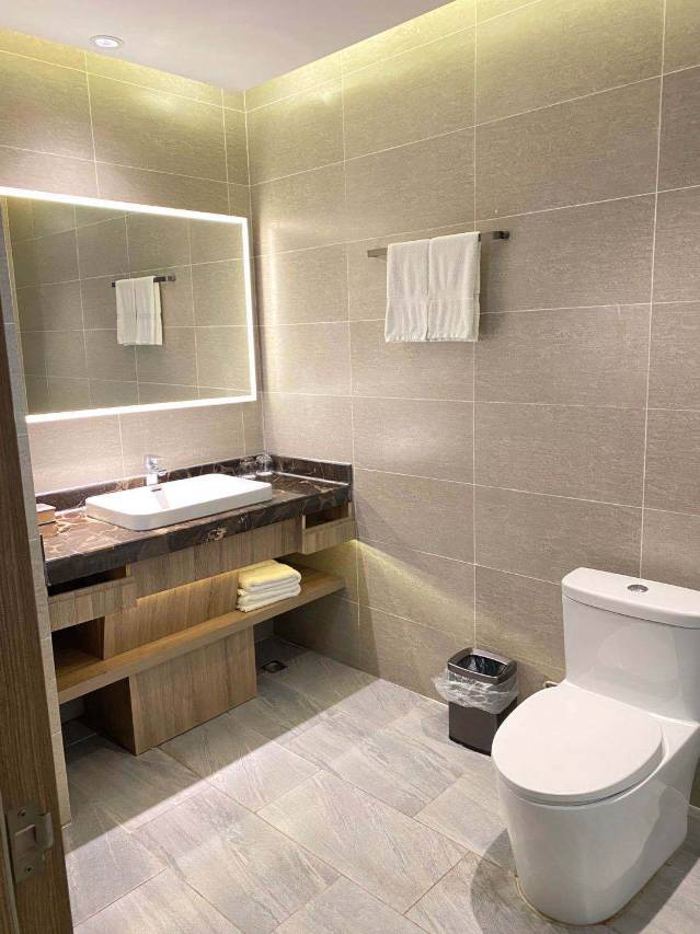 酒店房间新装修的,属于商务型的,5-8层全是房间,出电梯的左手边是豪华房间,右手边是高级房间,角落里是异形的大床房等布局,高级双人间窗户有大有小,本次入住的是高级大床房,因为在角落是异形房,但空间完全够用,也没有觉得什么不好的。早饭也可以,品类不多,能吃饱。