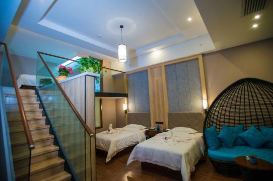 服务:来到之后前台看到我们两个孩子就升级了亲子套房。前台小哥带到房间后我们问他哪里可以买西瓜,他立马就送我们一盘尝鲜,晚上回来的晚还送了凉爽的冰粉,为帅哥点赞,孩子都很喜欢这里。