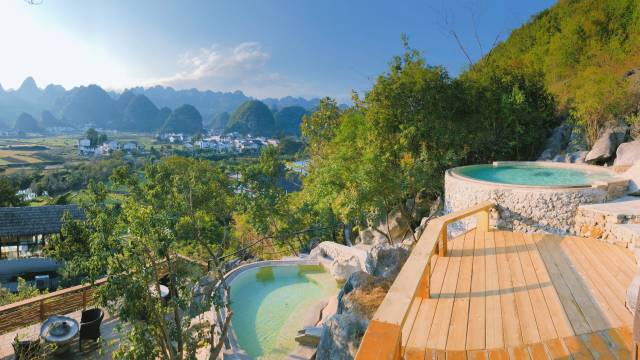 万峰林独有的半山无边际温泉汤浴,在此既能享受一家老小共浴温泉的亲情时刻和天伦之乐,还能泡汤细品“看庭前花开花落,望天外云卷云舒”的怡然自得。