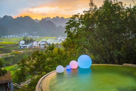 客栈是万峰林景区内集贵州传统蓝染文化体验、半山观景温泉、亲子有机农场于一体的精品温泉度假酒店。在这里美丽的苗族姑娘,会带你亲手绘制贵州传统蜡染作品,探秘贵州古老的艺术文化;贴心的管家式服务是客栈的品质保障。