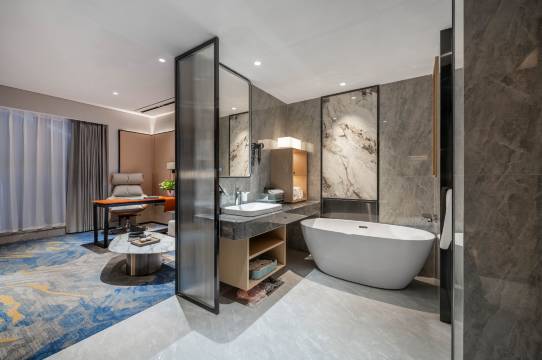 --酒店配备高速电梯,可以一键快速直达您所在的楼层。房间面积38-78平米,且采用全玻璃幕墙,不仅能够尽享大房舒适,还可以尽观城市美景。