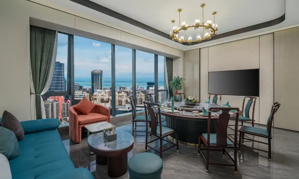 酒店位于海南省省会城市--海口繁华CBD核心地段--国贸,一座耸立于国贸城际线上的地标酒店,【坐拥5大商圈】上邦百汇-阳光城商圈、宜欣商圈京华城商圈、金贸-富国商圈、N次方公园-万象城商圈。酒店拥有171间高端智能品质客房、琼菜传奇中餐厅、西餐厅、棋牌中心、宴会厅、甲级写字楼、商业购物广场等,享地下停车位多达600+。这里的交通四通八达,是商业、文化和美食交汇的中心地带。在海口骏豪酒店居停,俯瞰海岛风光与繁华城景,零距离倾听城市脉搏。轻松休闲的美好时光从骏豪开始,一起探索城际线上的悸动、迷人晚风和云端觅景。