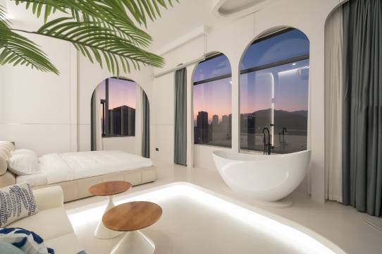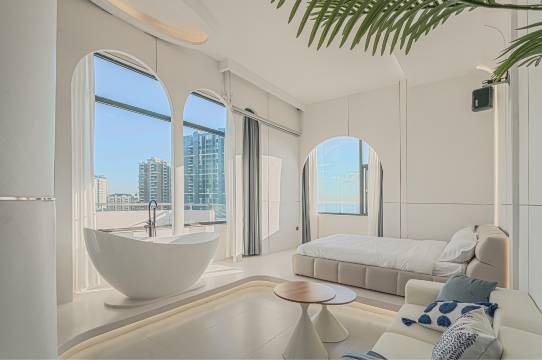 房间很漂亮,落地窗可以直接看到海景,日落也可以看到,还有各种日用品可以自助拿很贴心,楼下就是各种大排档,走大概五分钟就能到海边玩沙子,民宿有自己的停车场,停完直接在楼下租电动车去环岛就好,离店还送了海苔跟冰箱贴、很不错