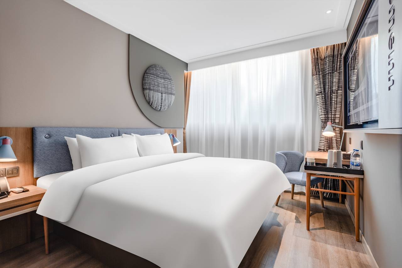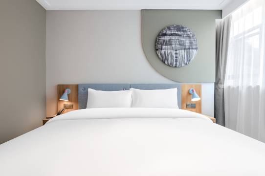 房间小巧,设施超齐全,空调、电视、吹风机、一次性用品应有尽有,布局合理完全不觉得局促。走廊安静得完全听不到嘈杂声,睡眠质量拉满。卫生方面床单被套干净无异味,浴室也没有水渍残留。从前台办理入住时工作人员服务贴心,性价比很高。