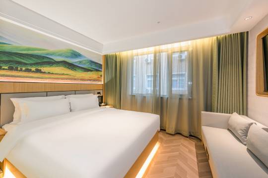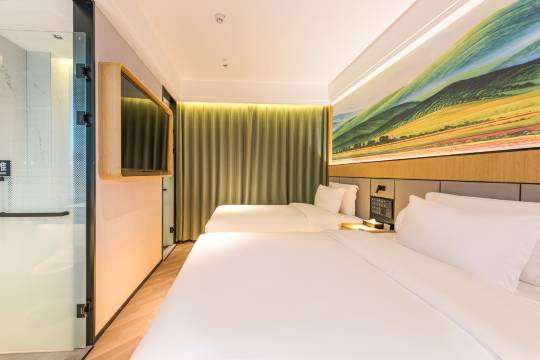 距离地铁站很近就几分钟,设施特别新,还有送餐机器人很方便。卫生很干净,卫生间干湿分离很宽敞特别大,服务很热情。真不错!