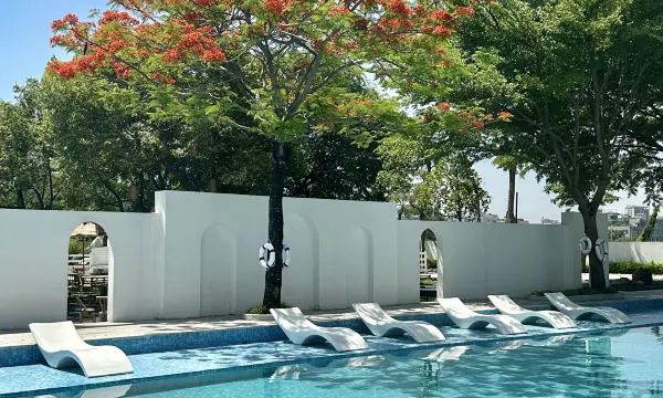 来到大堂登记处就感受到了这家民宿的独特魅力,简朴中带着雅致,风格清新自然。室外的小花园、泳池,令人惊喜。