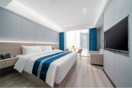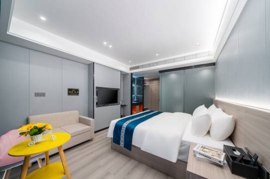 酒店位于二环路中段,距离中心购物广场,新人民医院,汽车总站,龚州生态公园车程约5分钟,出行便利,有大型免费停车场!装修风格时尚简约