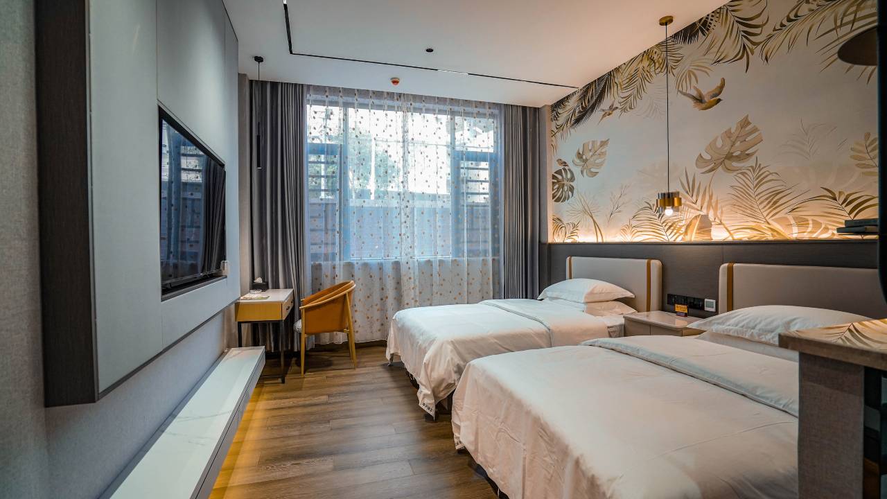 酒店轻奢风格装修,宾馆工作人员热情负责,宾馆交通便利,是康养及商务旅行的上选。