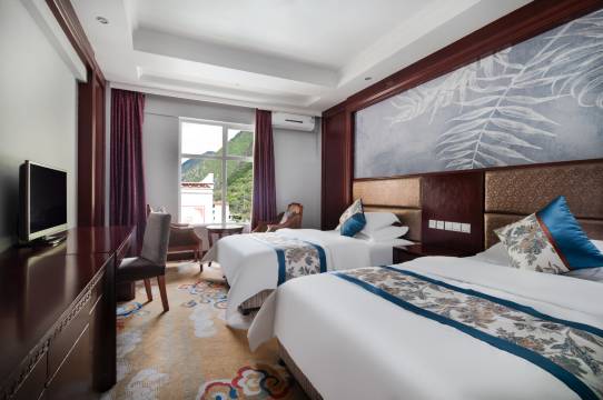 孩子耍秋假,去了古尔沟,入住了这家酒店,房间视野好,又大,还去泡了温泉,孩子玩的很开心,很满意。