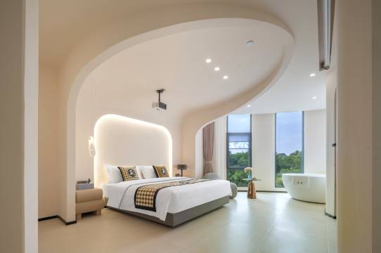 房间干净卫生 设施也很齐全 周围环境也超好 还带有泳池 适合带小朋友来玩 前台小姐姐服务很热情 有求必应 体验感特别好
