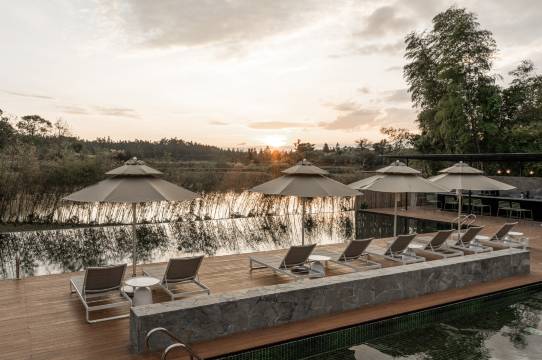 有泳池,餐也好吃,晚上可以围炉煮茶,酒店和沙洲都很美。体验到难得的恬静闲适,还想再去!