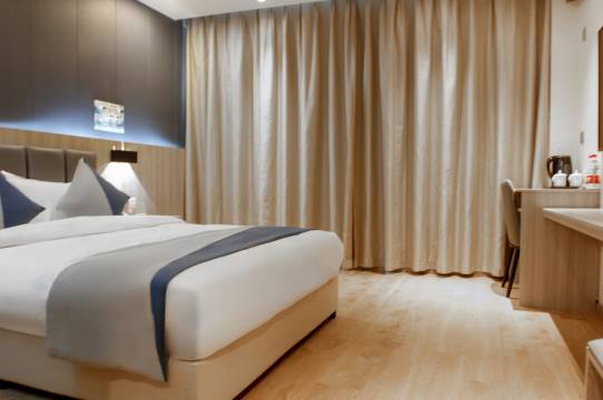 酒店位置很好找,还有自有地下停车场,房间干净卫生,设施齐全,性价比很高。周边吃饭购物都很方便,离市区核心区也就4公里路程