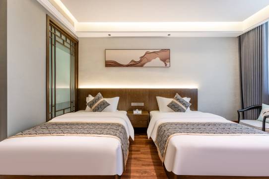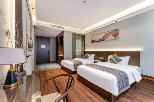 酒店位置不错在县中心离煌歌广场跟金利多广场都很近,前台小姐姐服务很好,因为我们晚上一两点才到还给我们免费升级房型,房间也很干净,空间也很大,看我们带了小孩子主动给我们免费多拿了几瓶水加了一床被子,很贴心,下次会再来的