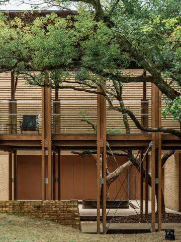 大树:院内,围绕香樟树林,有一圈木构的连廊,搭配钢梯,工业感十足,拍照很出片