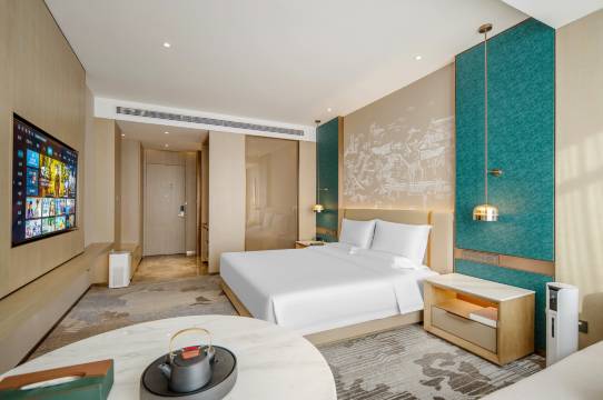 前台小张服务非常热情,有耐心。房间宽敞明亮,视野开阔。床品柔软舒适。卫生间干湿分离,空间布局合理。热水稳定,淋浴舒适。本次入住非常满意。