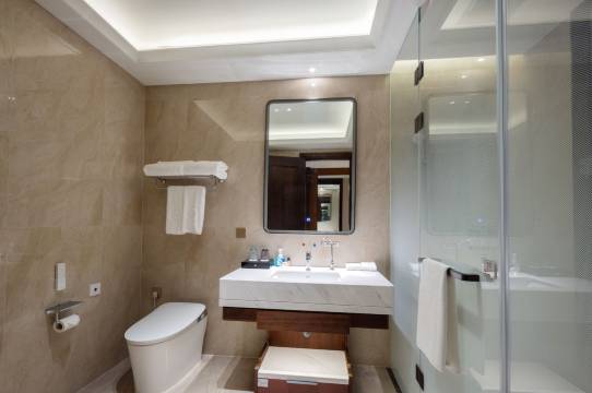 房间设施比较新,智能马桶,房间瓶装饮用水给的很多。早餐品种挺丰富的。